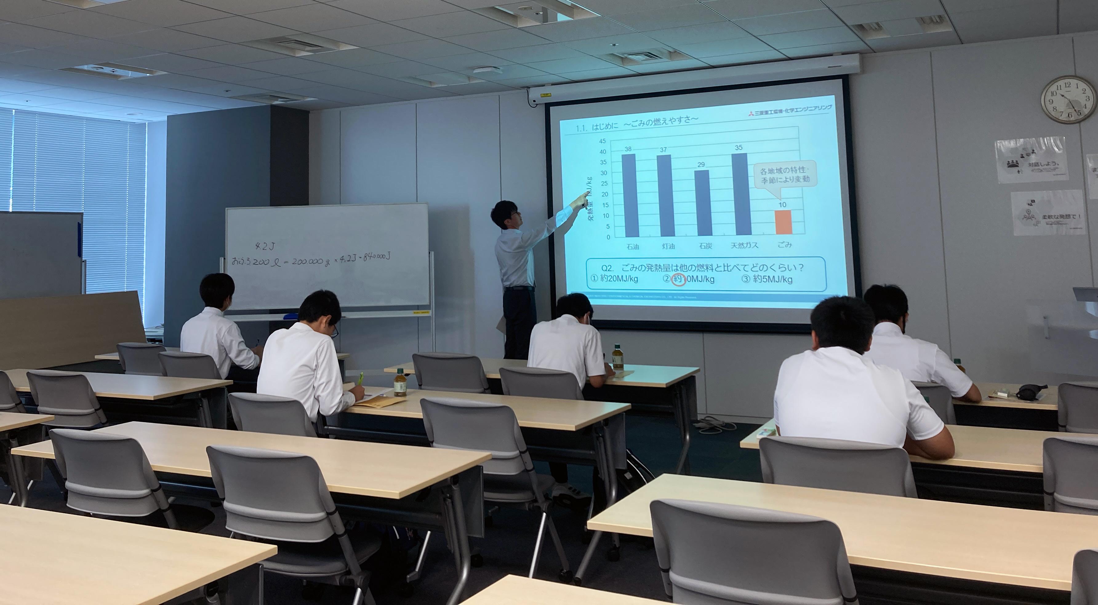 訪問学習当日は、環境装置エンジニアリング事業とSDGsとの関わり、および都市ごみ焼却発電施設の概要を中心とした1時間程度の講義の後、本社内の職場見学を行いました。